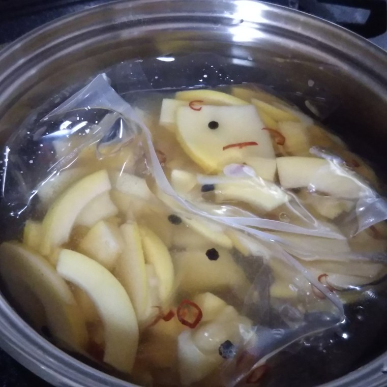 その後、85℃から90℃のお湯で30分湯煎。