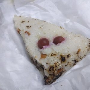 おこわの間に昆布と大豆の佃煮みたいなのが入ってます。