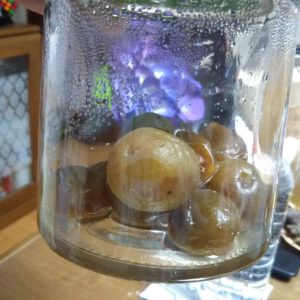 氷砂糖も溶けたので、漬けた梅を取り出して、完成!