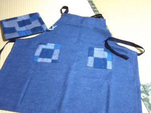 で、型紙なしの適当エプロンを縫い縫いしました。