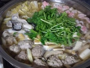 白菜や長ネギ、春菊、豆苗などたっぷり入れました。