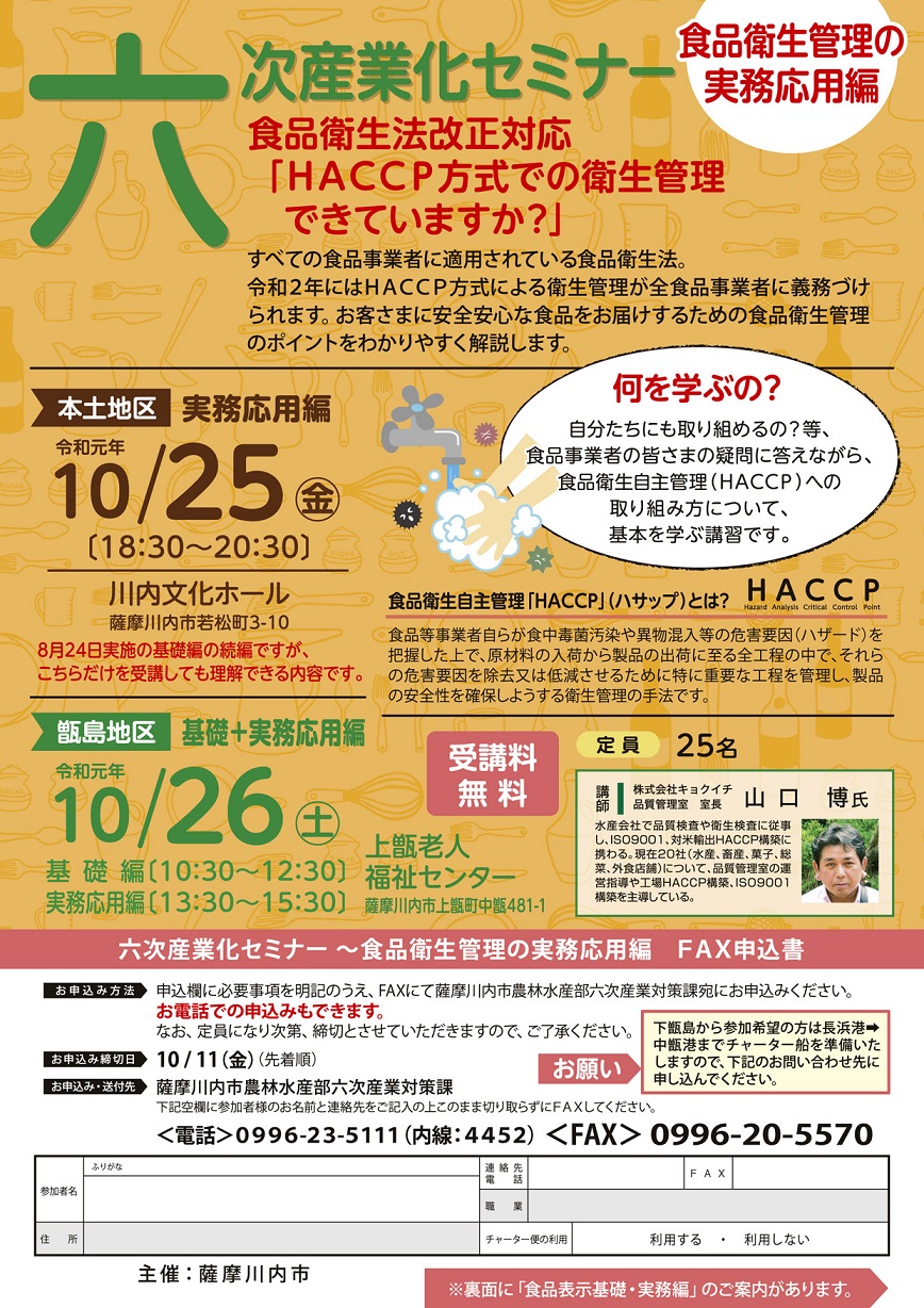 明日、明後日は薩摩川内市六次産業化セミナーです