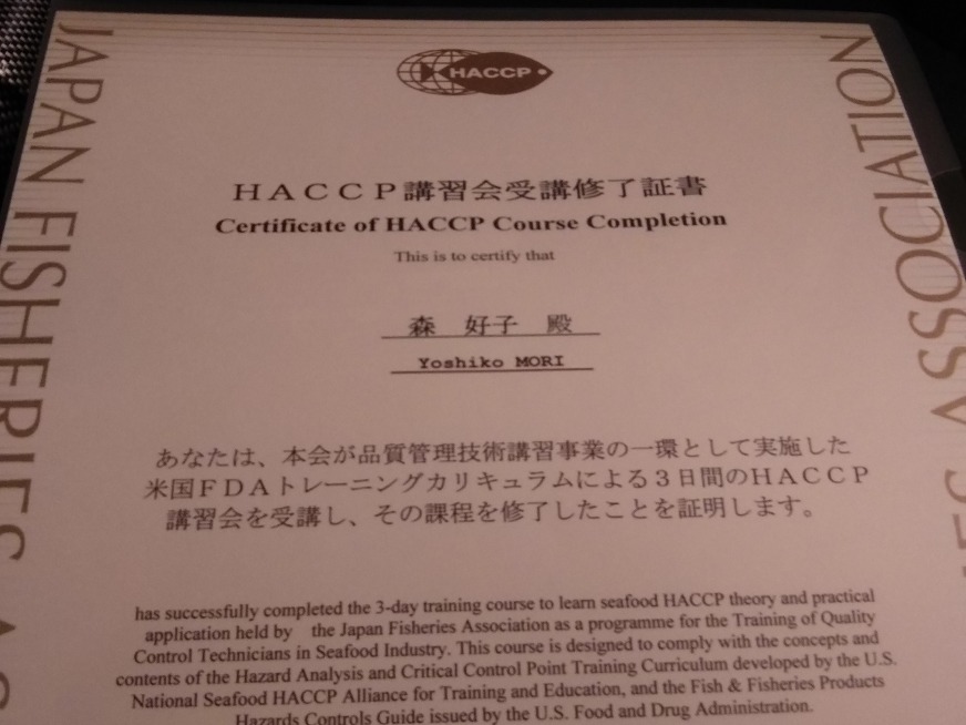 大日本水産会HACCPのFDAトレーニングを受講していました。