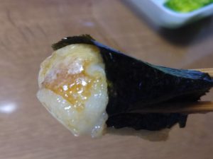 お醤油つけて、出水の海苔を巻いていただきました♪