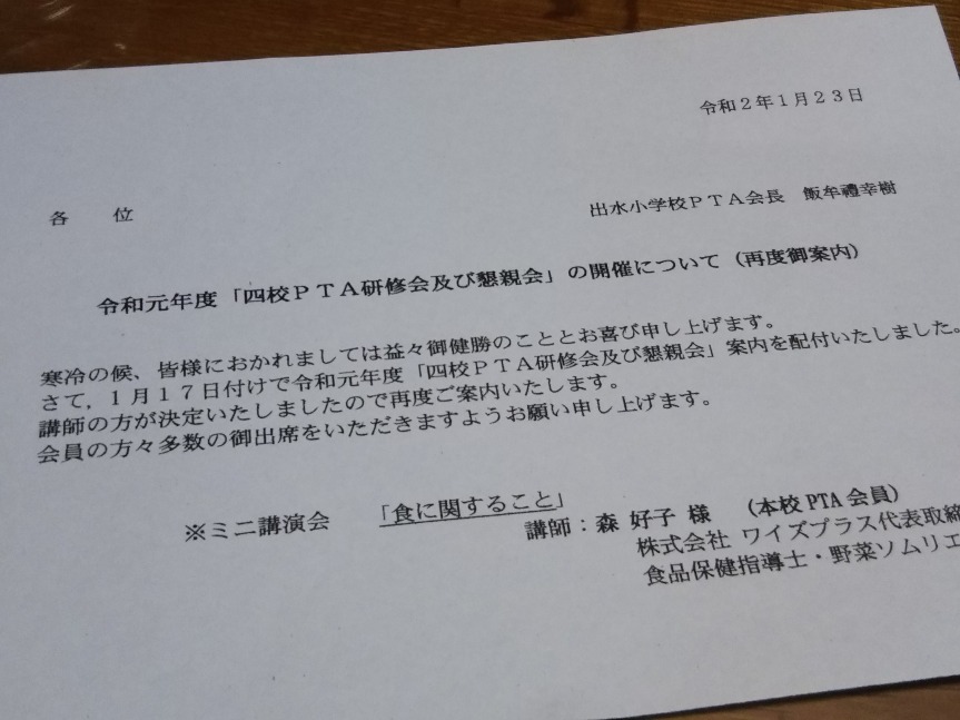PTA会長が少しでも多くの人に参加して欲しいと追加プリントを配ったのだそう。