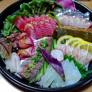 今回のメインはテイクアウトした橋本水産さんのお刺身盛り合わせと