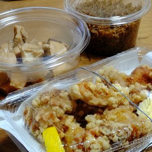 この日は唐揚げに魚のしぐれ煮とお隣のお店の