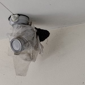 外玄関の外灯やら、あちこちにビニールなどが巻いてあります。