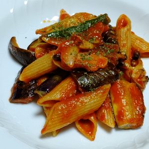 お野菜やベーコンを加えてペンネと和えました。