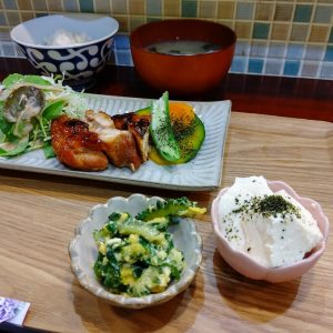 小鉢2種にメインのおかず、野菜もたっぷりです。