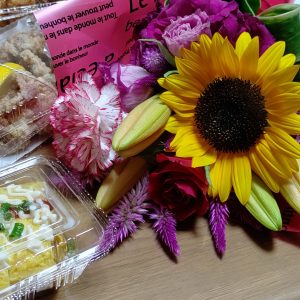 ぎゅっと詰め込んだ花束が500円だったのでこちらも購入。