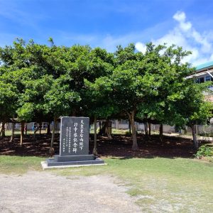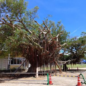 そのあと、先日の台風で倒れてしまったという和泊小のガジュマルも見に行きました。