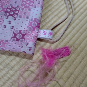 袋の下の方に付けた紐がほつれて取れてしまったようです。