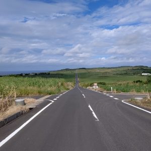 まっすぐな道の両側は見渡す限りのサトウキビ畑。
