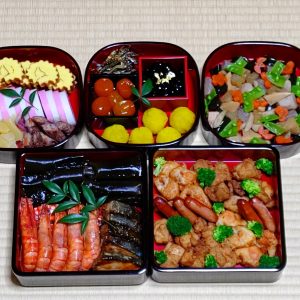おせちには唐揚げ、ウィンナーという主人のリクエストやらで