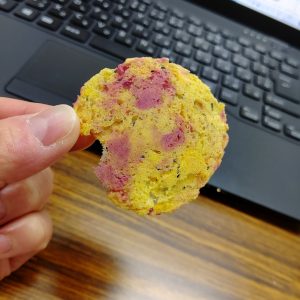 これはシルクスイートと紫芋をマーブル状にして焼いたもの。