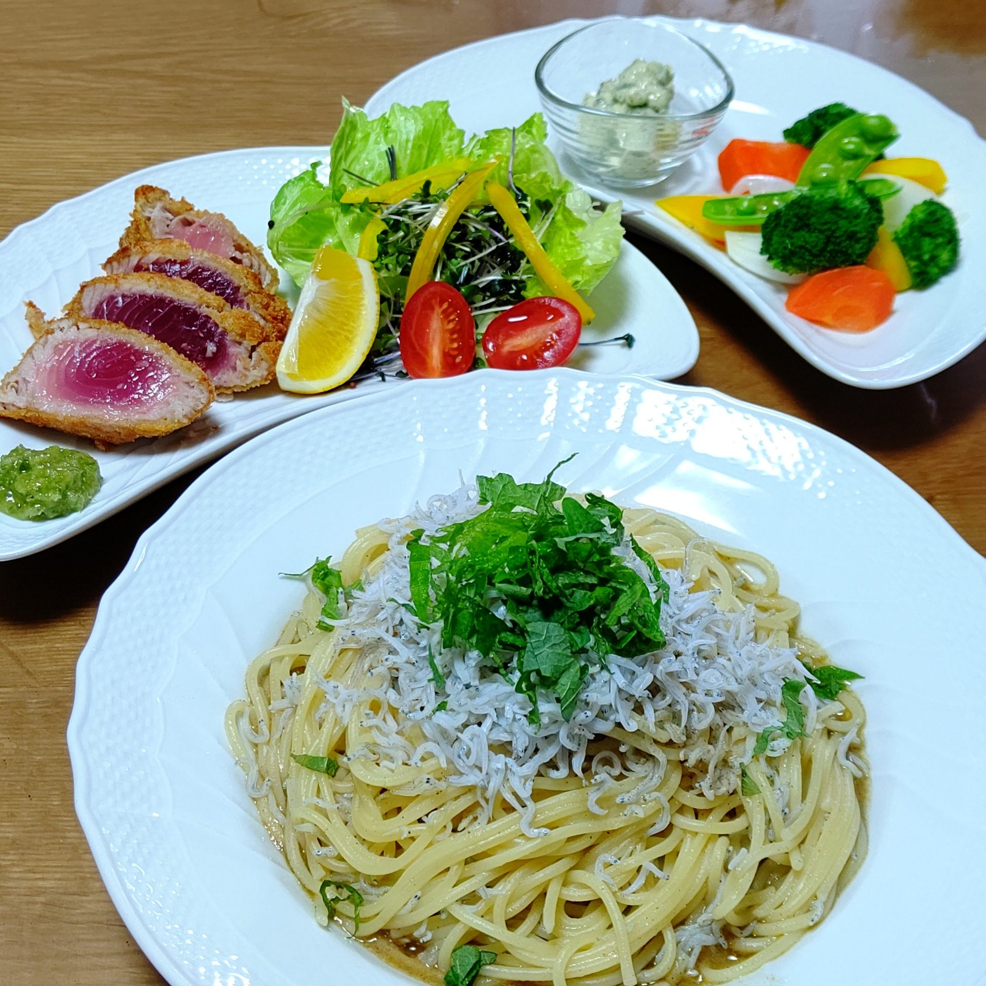しらすをたっぷり使っただしペペロンチーノ風パスタ