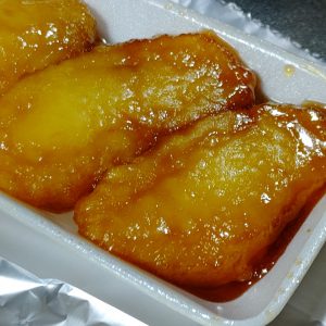 ゆでてから、油で揚げたか焼いたかした感じです。