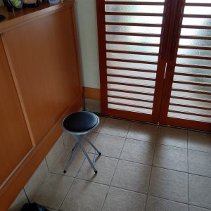 へたくそで泥が落ちているツバメさんの巣からの落下物を片付けて、