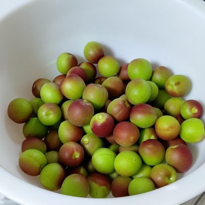 とりあえず、小梅を買ってきて、酢に漬けることにしました。