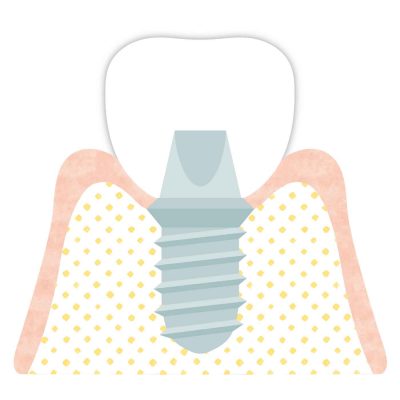 その後、もう一度切り開いて、歯の土台となるものをつけて、