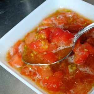 冷凍庫から出したトマトは流水で洗うと、皮がつるっとむけます。