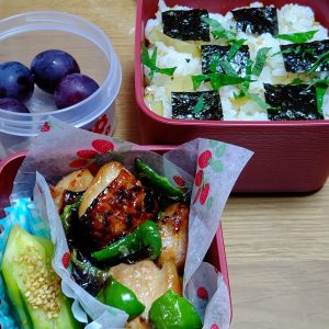 この日は混ぜ寿司と鶏の照り焼き弁当でした。