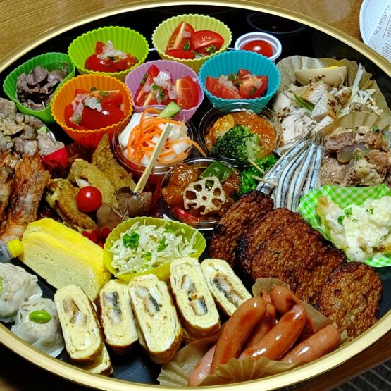 焼酎4合瓶+3店舗のおかずセットがついたお得なセットです。