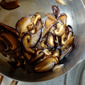 しいたけを甘く煮たのは、おいなりさんの酢飯に混ぜ込みます。