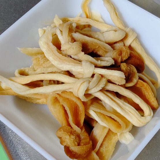 お酢を少し入れて下ゆでしておくと柔らかくなります。