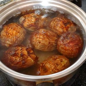 すぐに冷まして、皮を剥いてから、冷蔵庫に入れておきます。