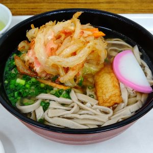私も手打ちそば(温かいの)にかき揚げをのせてもらいました。