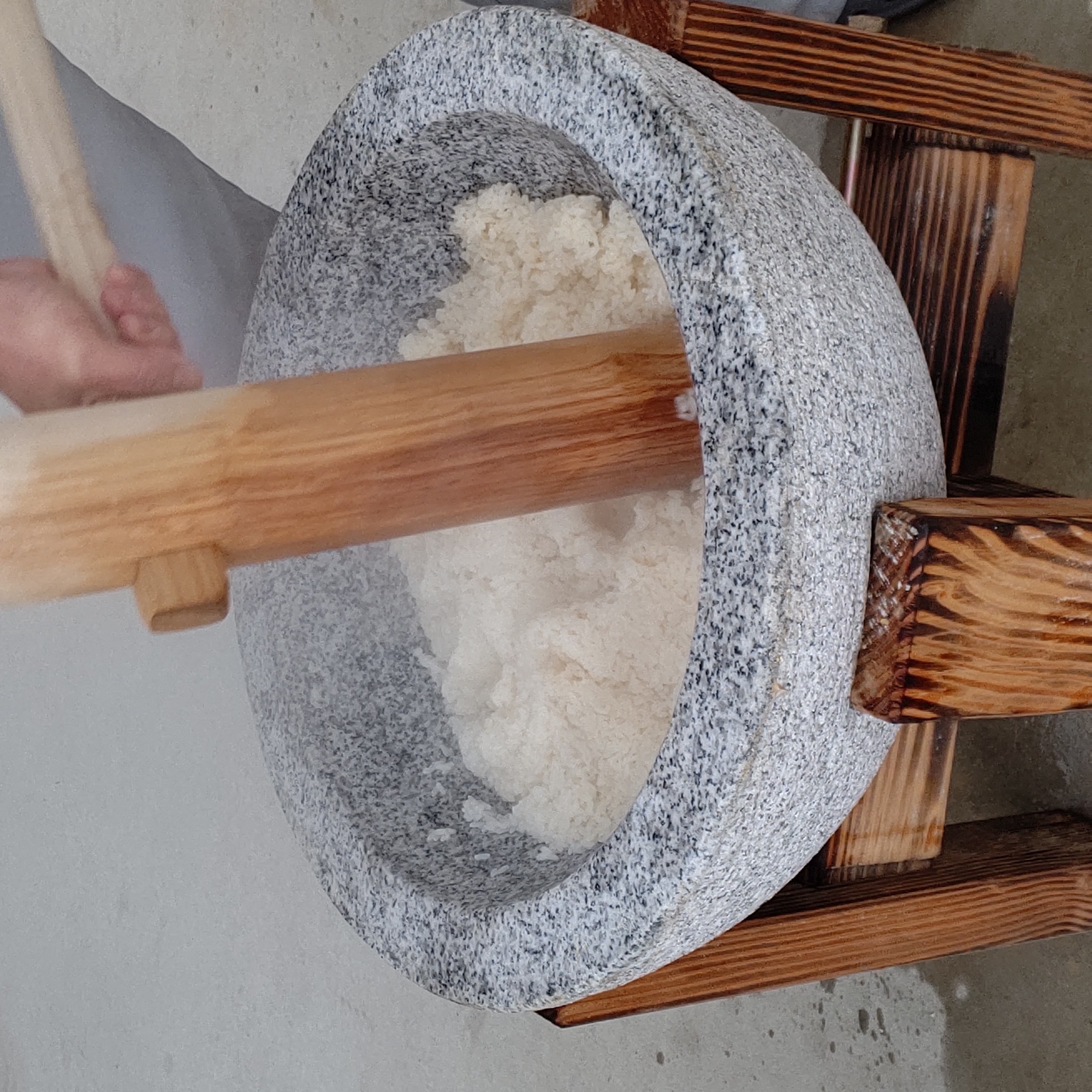 搗いたお餅はひとつずつラップして冷凍庫へ。