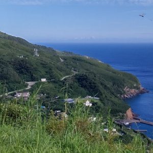 山の真ん中くらいに白っぽい四角があるのが娘達が暮らすしおかぜハウスです。