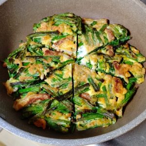 野菜室で、ニラが弱っていたので、チヂミ作りました。