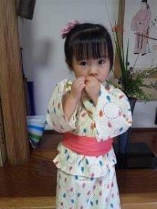 夏祭りに行こうと浴衣を着せたときの写真です。