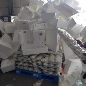 発泡スチロールは1~1.5キロを圧縮して、こんなに小さくなります。