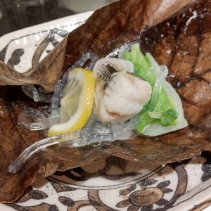 何だったか忘れましたが、柚子釜に入ったさっぱりした前菜。