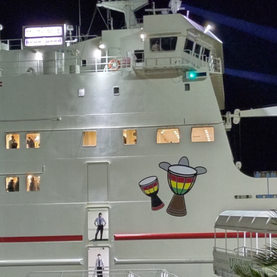 お昼にしか迎えに行ったことがなく、夜の港は初めてでした。