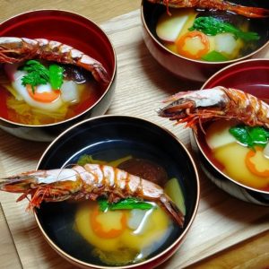 お雑煮はいつものクマ海老だしのすまし汁です。