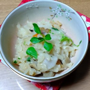 炊きあがったら、混ぜるついでに刻んだ七草を入れて蒸らします。