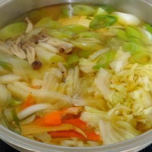 白菜や長ネギ、にんじん、大根などをふんだんに入れた鍋!