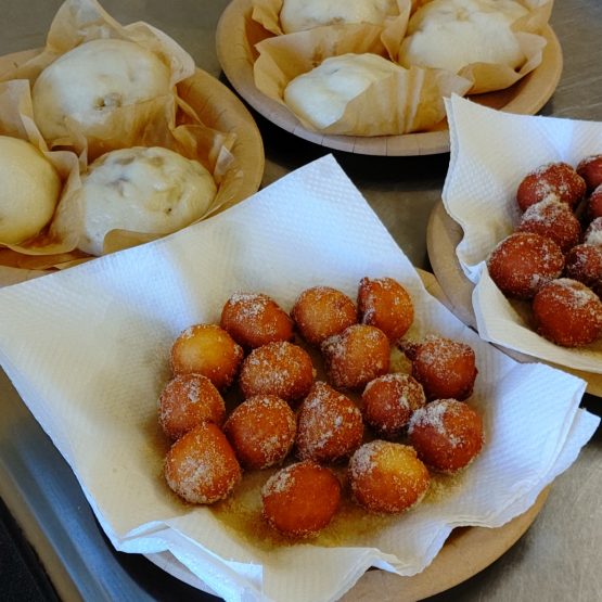 米粉を使った簡単「牛まん」と「米粉ドーナツ」の実習。