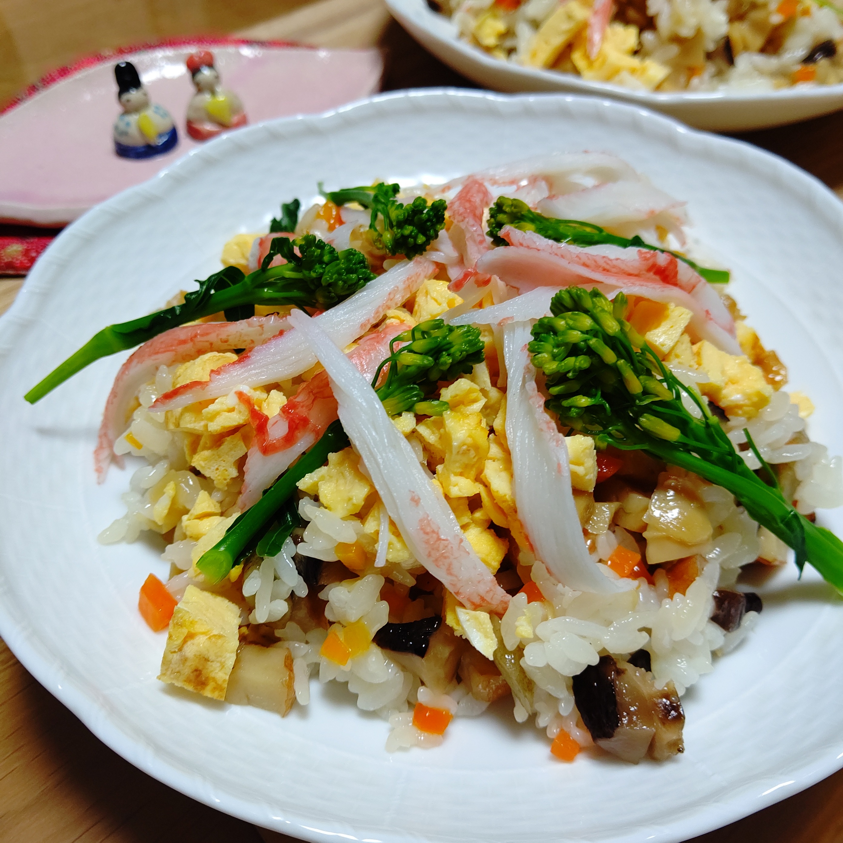 酢飯に混ぜて、ちらし寿司ができあがりました。