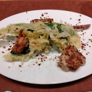 シェフの奥様のご実家、北海道から届いた行者ニンニクのフリットは