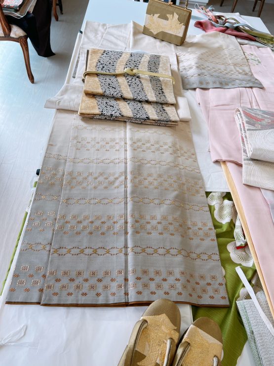 帯はお祝い事なので、金糸の入った桜の模様の袋帯を選びました。