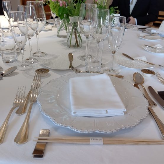 宴の終わりには新婦→ピアノ、新郎→ビオラ+友人の共演もあり、