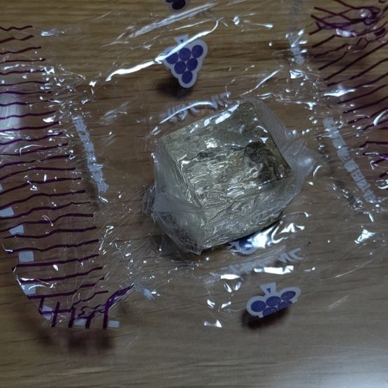 果汁は入っているか微妙な、寒天の甘いお菓子です。