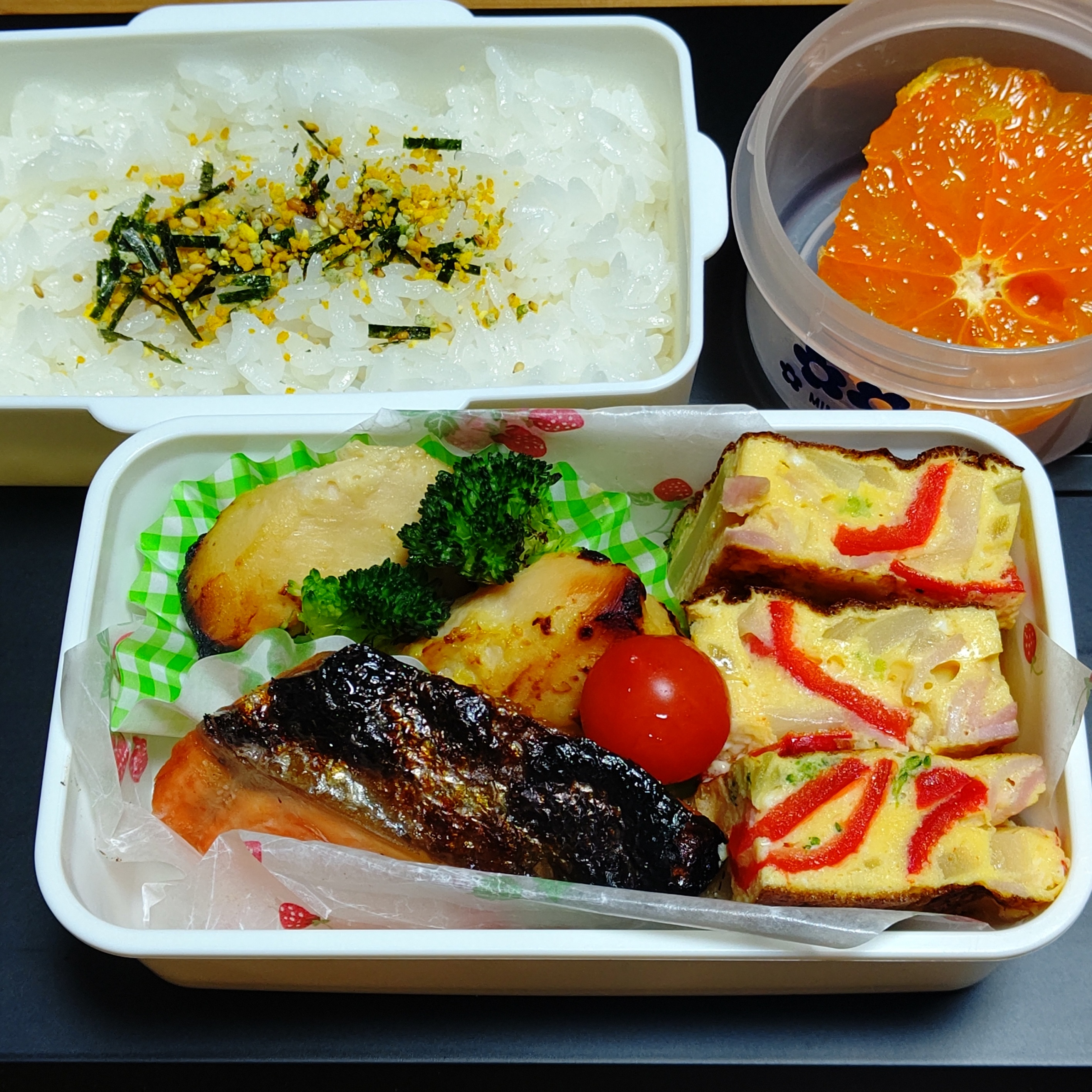 焼き鮭に鶏ささみの西京焼き。これにもブロッコリーを。