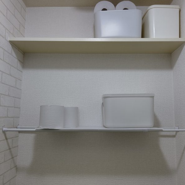 そこで突っ張り棒とか買ってきて、棚を作りました。